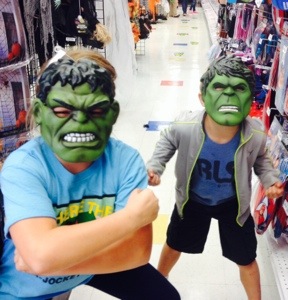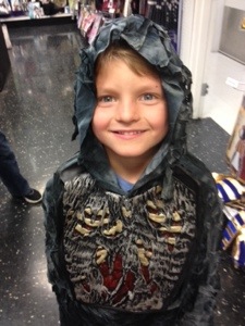 Back to Mario … who decided the night before Halloween that he had to have a different costume. That day at school he had decided that he would walk with a group of his friends who all had “cool costumes” compared to him. So, I got to miss out on Maria’s end-of-the-year soccer party in order to take Mario to Halloween Express. It seemed that quite a few other families were in our same boat. I picked out a NASCAR driver outfit and a 70s disco outfit and Maria was appalled. Luckily, my niece showed up soon after us. She has a son who Mario looks up to – Isaiah – who is a couple of years older than Mario. He’s a super cool kid. So when Isaiah picked a nerd costume, Mario decided he’d go for the same.