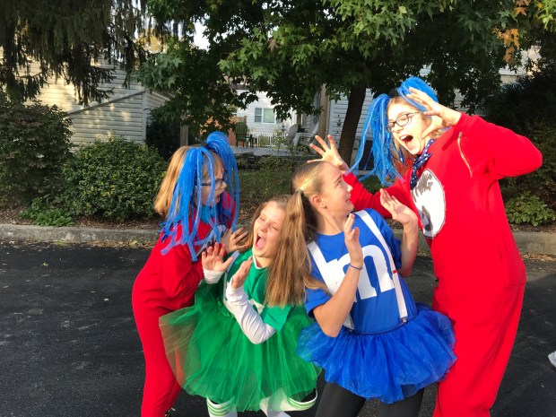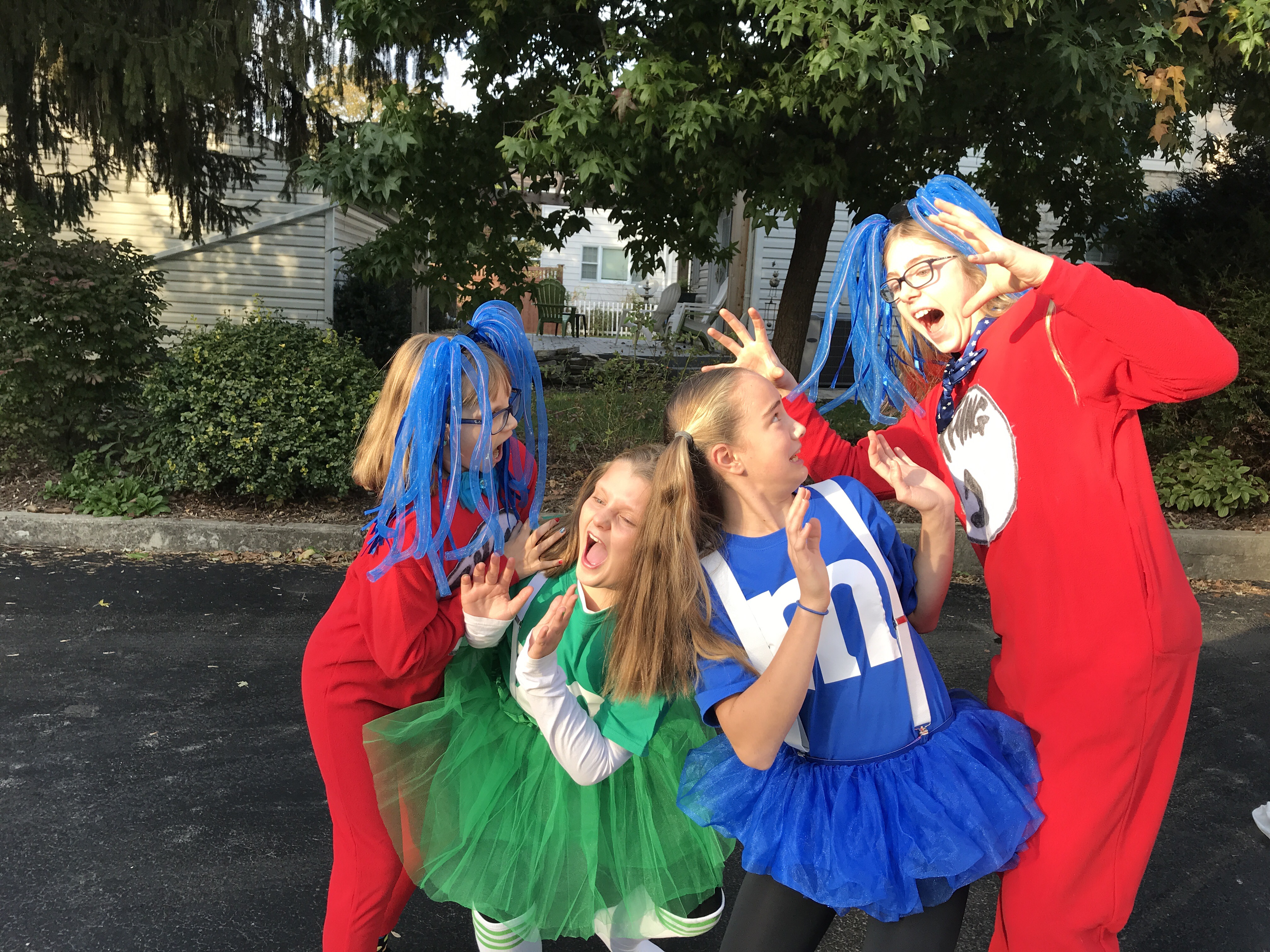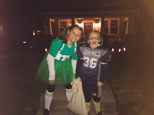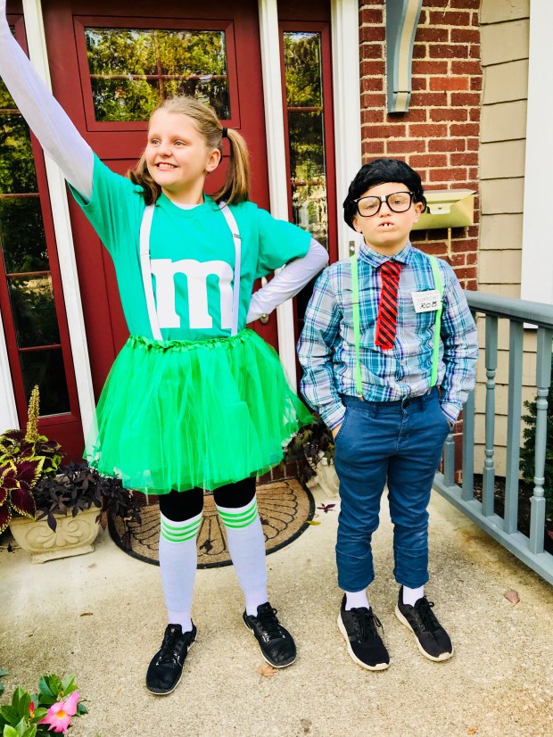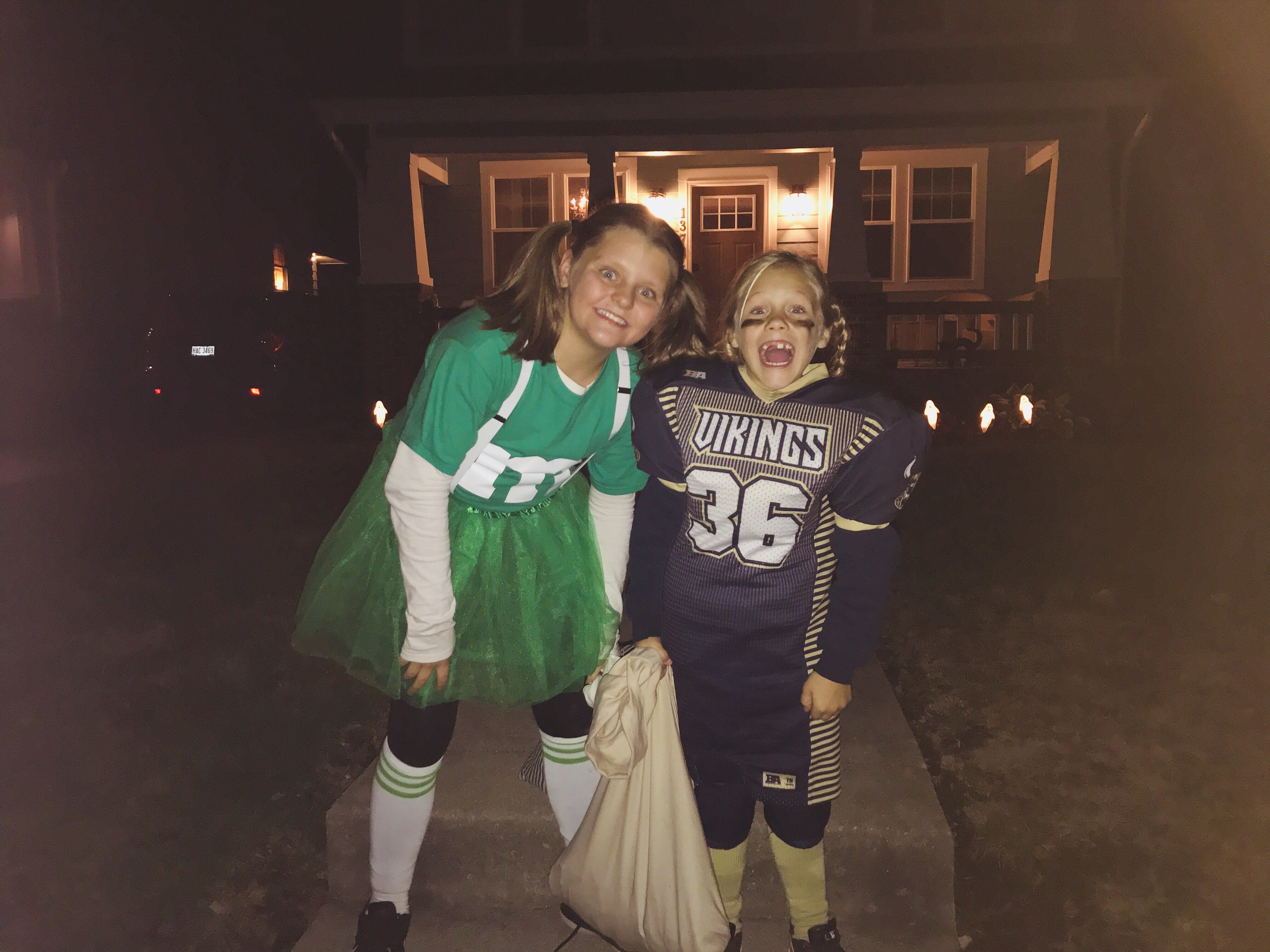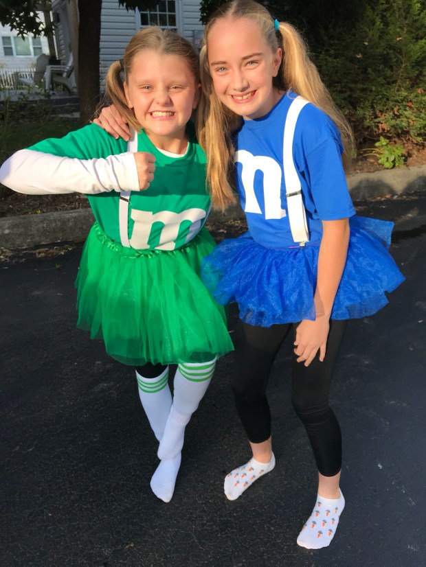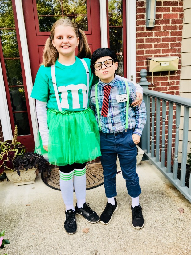 Maria knew all along that she would be heading out. She is a girl after my heart with her love for gathering as much candy as possible over a two hour period on a cold October night. My enthusiasm for this holiday has totally infiltrated my girl. She and her friend determined that they would be M&Ms weeks before Halloween, and they both got on Amazon to find matching outfits. Of course, Maria and I procrastinated and did not purchase the attire off of Amazon until days before Halloween, which led to extravagant shipping costs on my end. Better planning next year….