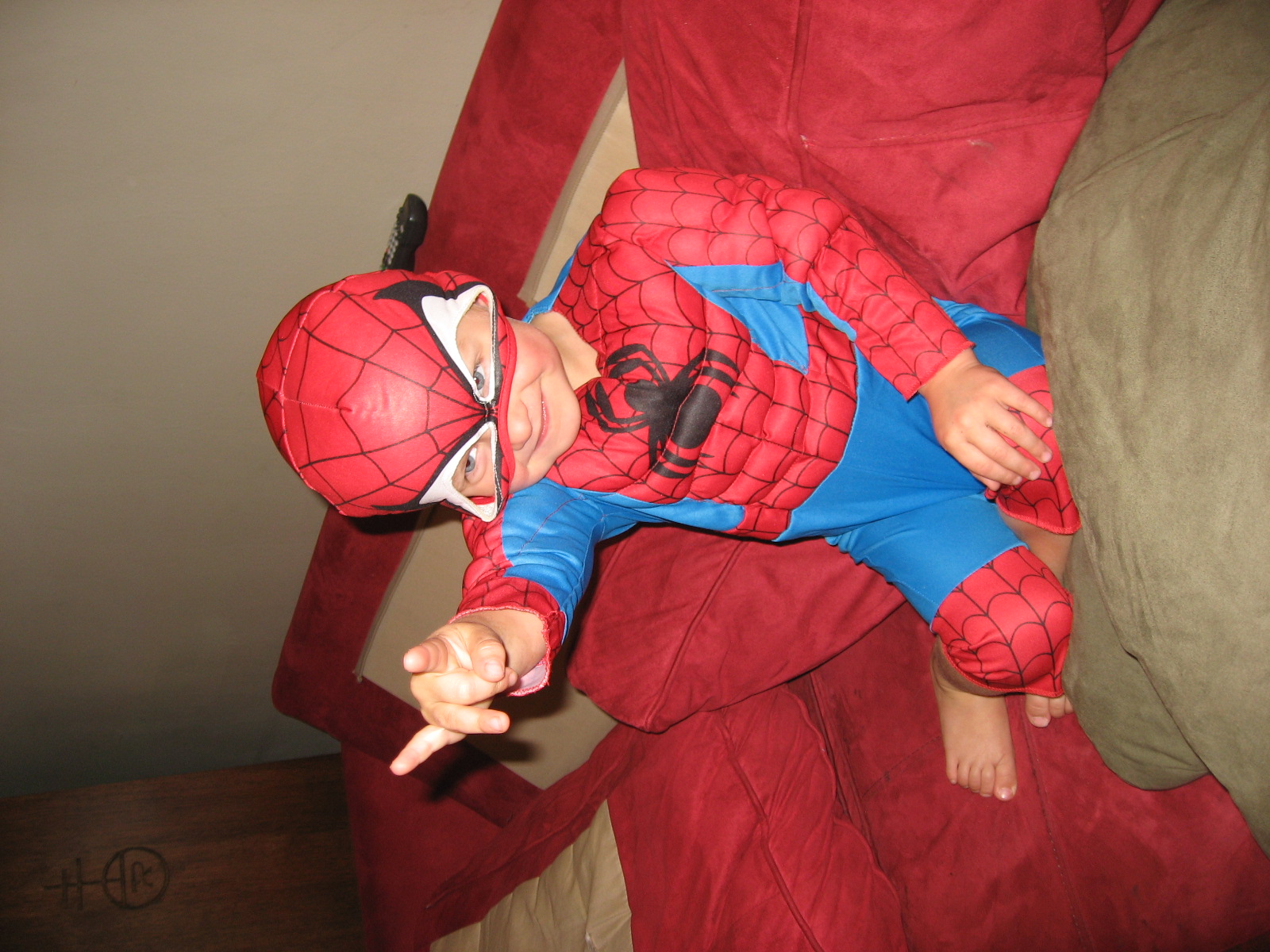 Mario loves Spiderman.  He adores him.  He wants to do everything he does.  He tries to climb the walls.  He jumps from the bed.  He flexes his wrist down to shoot a web.  He turns his head back and forth to determine where evil is lurking.  It is a pretty recent phenomena.