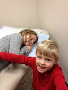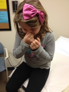 She switched off belting out tunes on the way home and sleeping. A good little patient. We got her home and she laid in bed watching TV and sucking on Popsicles. She didn’t make any ruckus; she didn’t call on Jon and I hardly at all. This is going to be a piece of cake, we thought. She slept well that evening, too. Machine! The next day, she felt a little sick to her stomach but was still in good spirits. She didn’t want to eat much so she continued with the Popsicles and abided by Our charge to take sips of water every hour. I even went to work for the afternoon and left Jon with her. He reported that she didn’t need much – an occasional new glass of water or a popsicle – but most of the time she was fine watching her TV and working on some homework. I thought she may even be able to go to school on Wednesday!