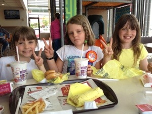 She rose up and put a smile on her face for everyone to see. But as soon as she swam over to Jon and I, she was crying. She said she hit a rock. Clearly, she had not hit a rock but she had hit the water so hard that it felt like it. Poor girl. We told her that she had tried it and that she had overcome her fear of the blob and that she could ignore it the rest of the trip. We called it a day after that episode, and went home to change and to head to a new dinner joint for the night. We found Gino’s – the best Italian food (for a fast food Italian joint) that we have ever had. And super service. Maria miraculously felt better – nothing like a little pasta and meatballs to make our girl feel better.