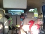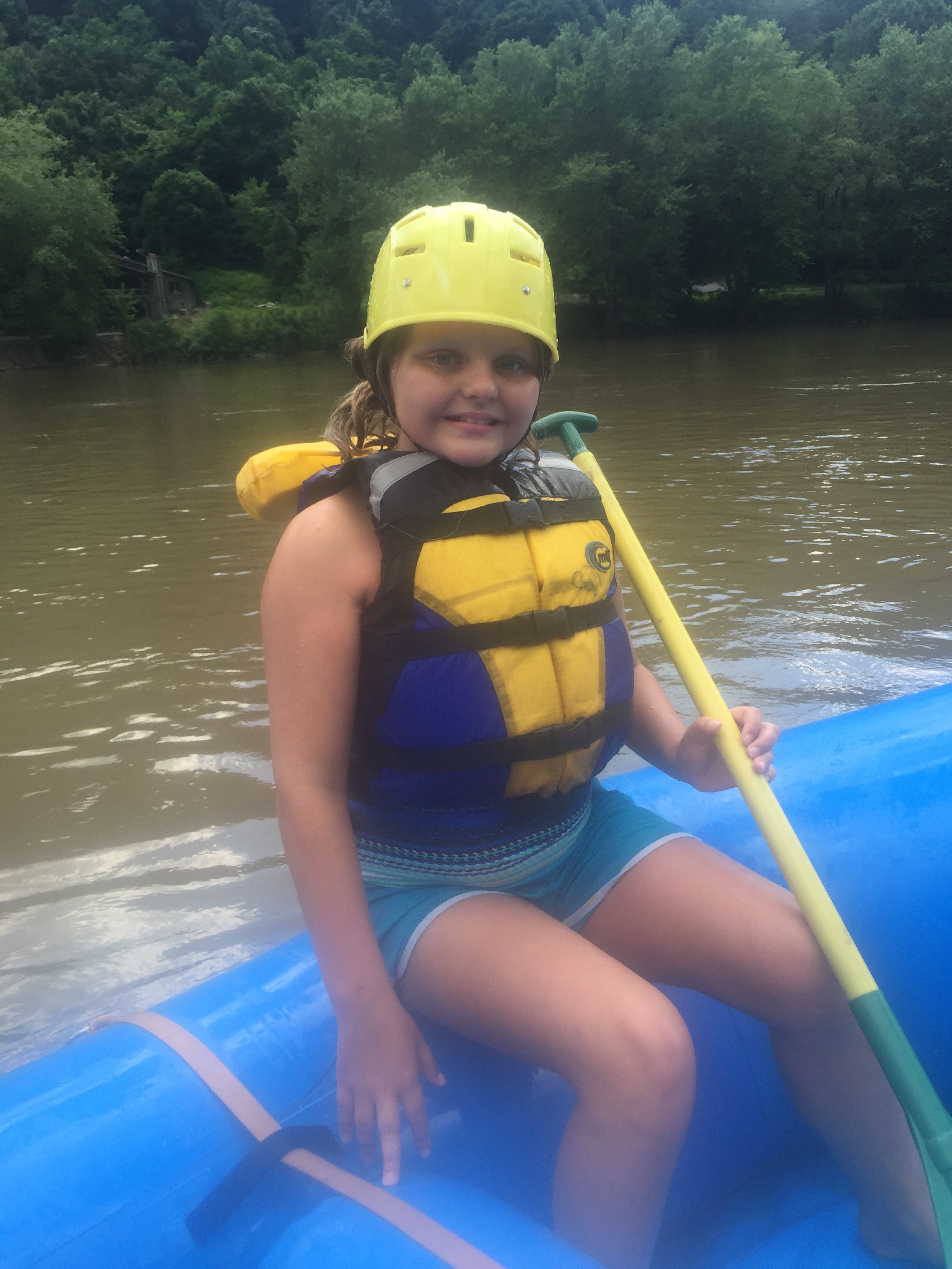 Jon and I stayed in the front since we had to have a strong paddle through the trip. The kids loved seeing Jon and I get soaked. The guide was awesome and allowed the kids to jump out of the raft and swim in the river in certain spots. She even let them get out and try to swim in the rapids, which freaked me out a bit but they loved it. She also played a game with Ri where Ri held onto a rope and tried to stand up on the raft and not fall off while the guide moved the raft back-and-forth swiftly. We stopped for lunch halfway down the river and they had a smorgasbord of smoked meats and side dishes and tons of brownies. Maria was in seventh heaven – she had been asking throughout the trip what the lunch would entail.