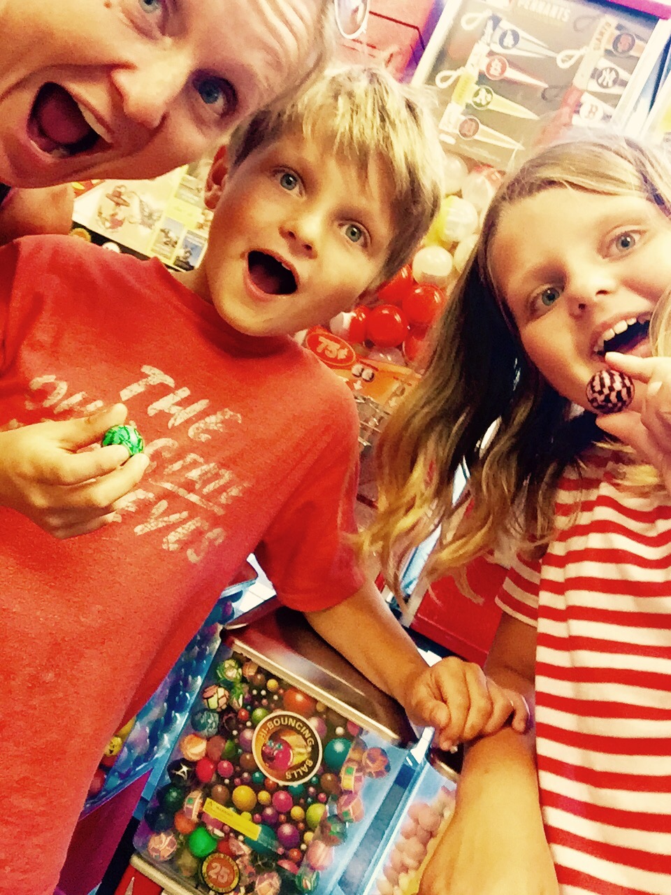 We hit up Bob Evans for dinner and Kroger’s to stock up on breakfast and lunch foods and lots of snacks. The Kroger’s was amaze-balls, literally, with two dispensers containing superballs. It took me back to my childhood when I’d head to IGA with mom or dad and beg for a dime to get a new superball. The kids were just as excited to get a quarter and wait to see which ball they’d get (maybe not quite as excited but they played it up because they knew I loved it).