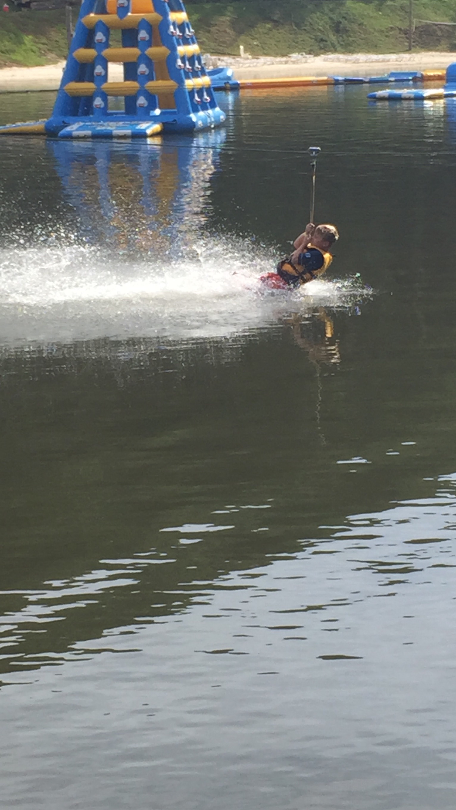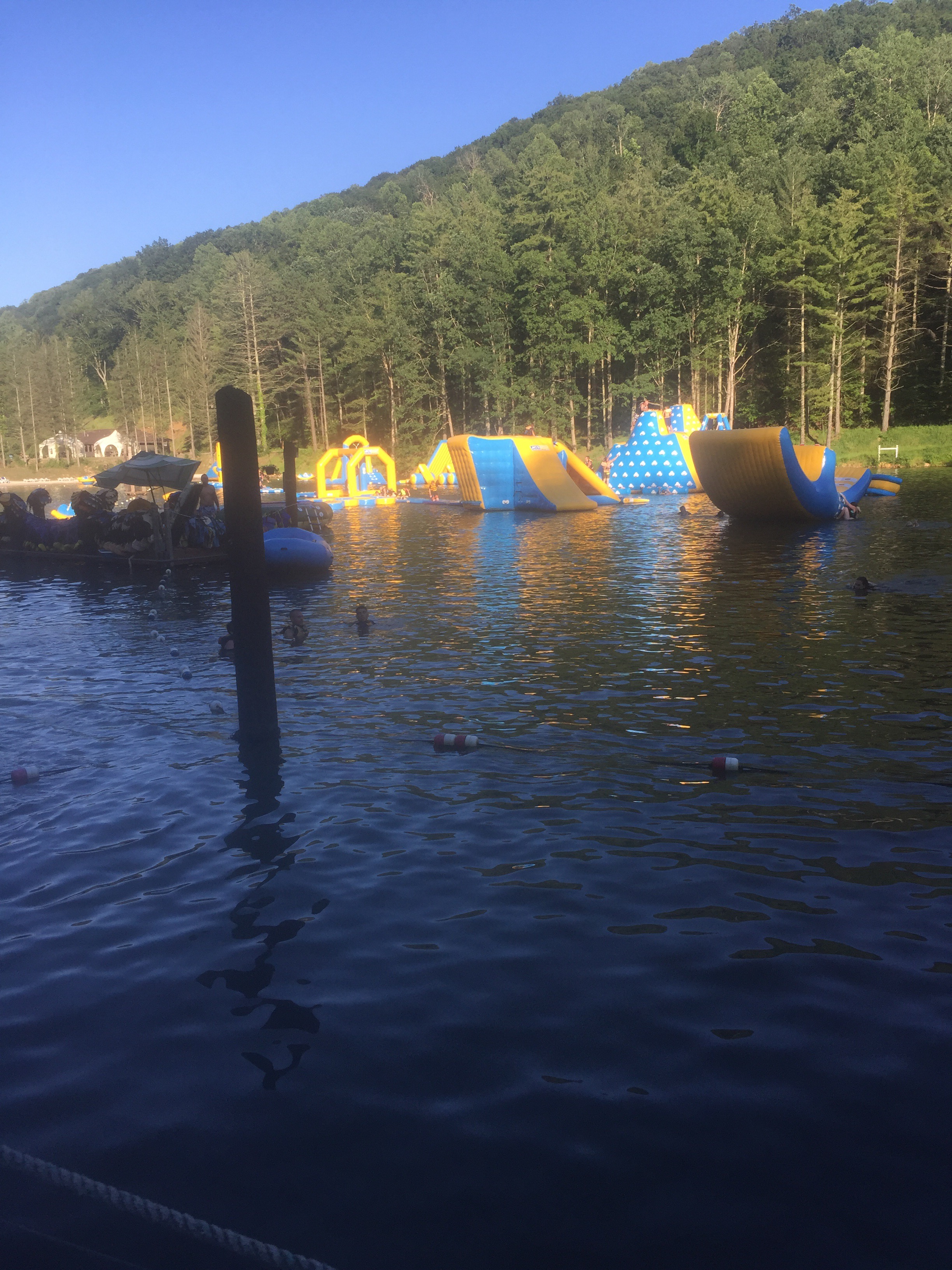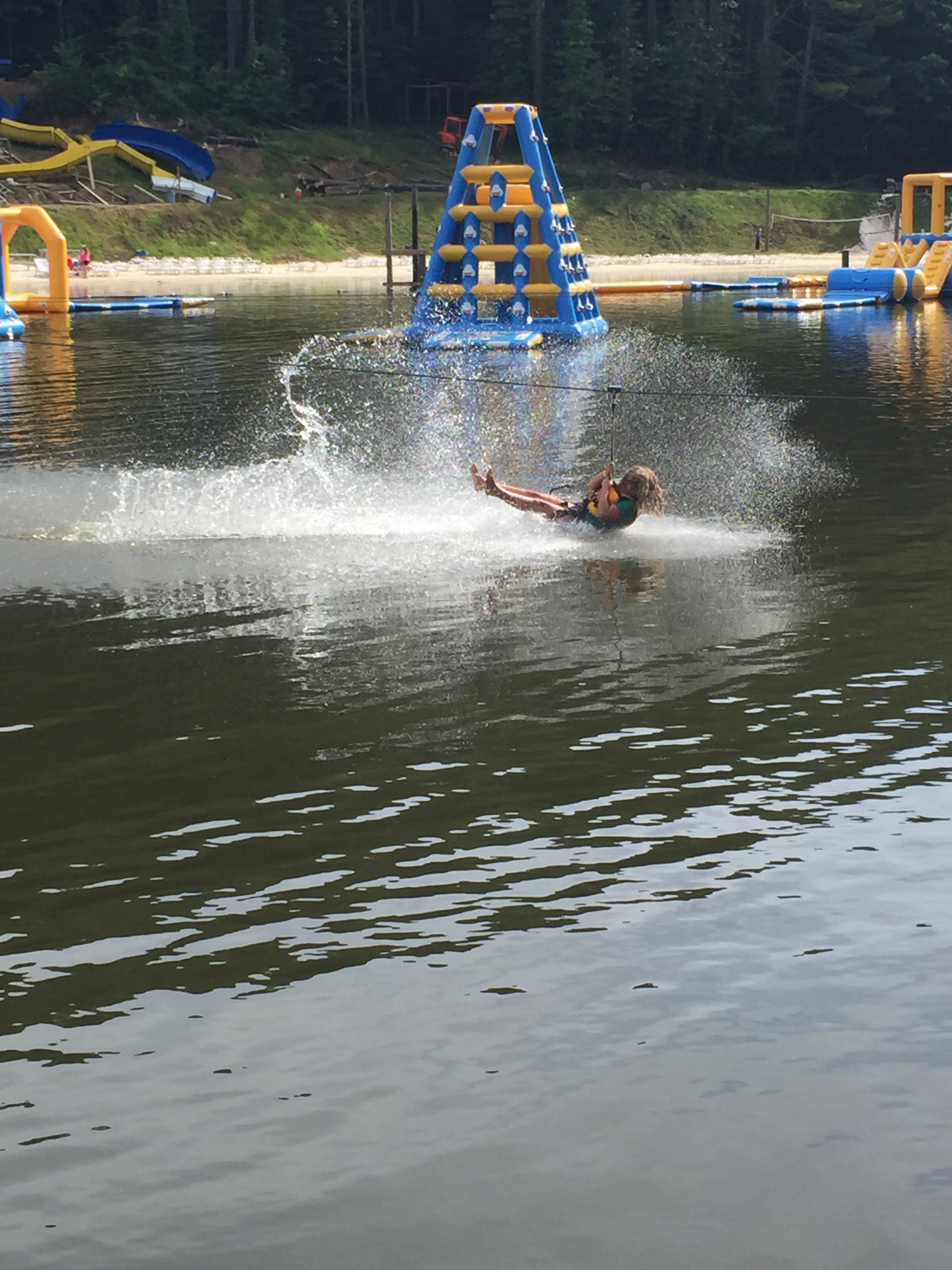 On Wednesday, we spent our last morning at the lake climbing up inflatables, trying to cross over lily pads, balancing on a giant dome, and jumping from the top of towers. I braved jumps I had no desire to do only because the kiddos begged me. We did one last water zipline and a few trips on the giant slide, and of course, one more blob. We could watch that blob for hours – it’s addicting watching folks jump on and get blobbed off. Ri got it right when she commented that it could be a reality tv show.