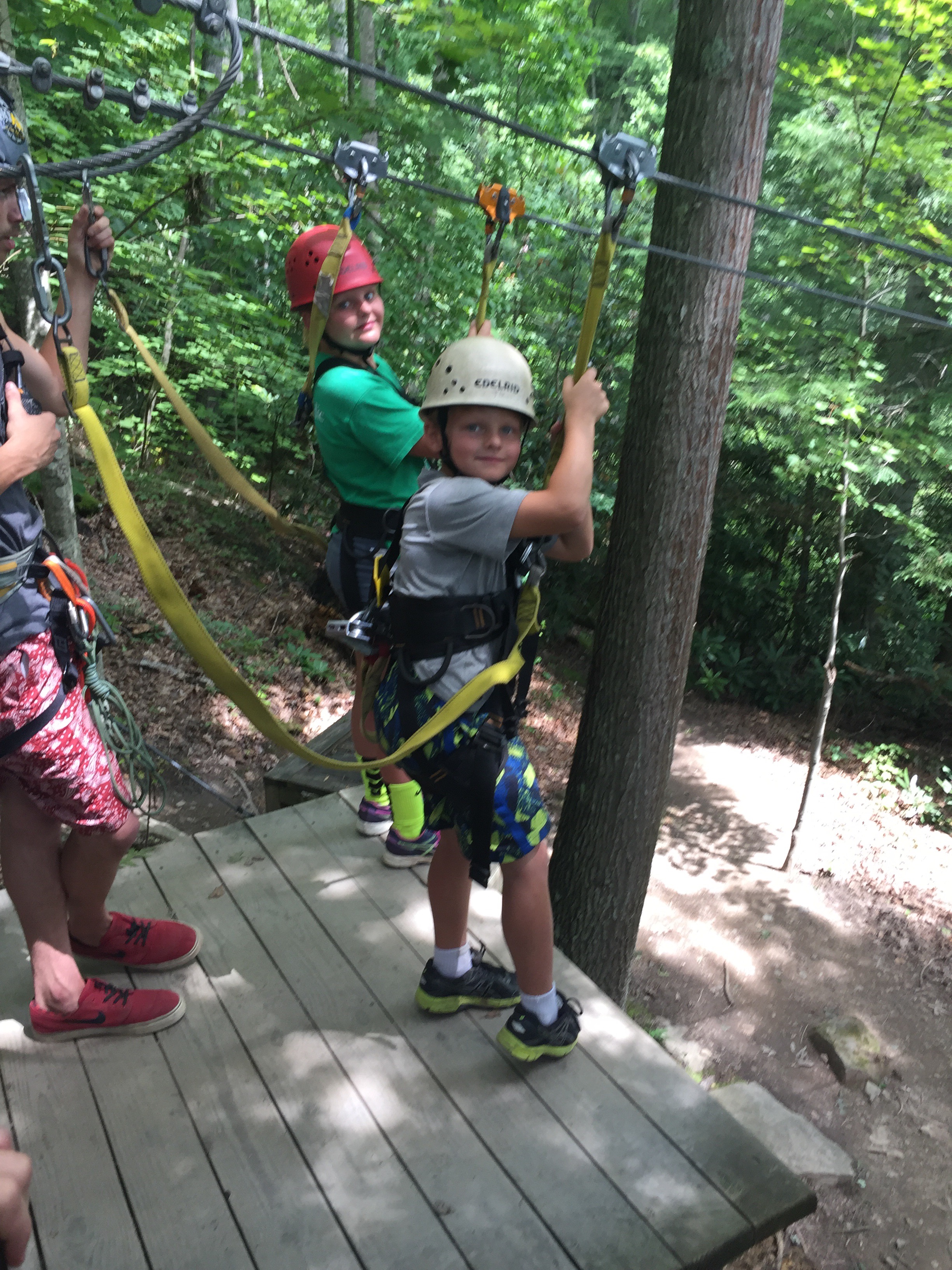 We had grown acclimated to our digs off the dirt road next to the pond full of blue gill. This was the first vacation where I did not look at my watch once to see how many more days we had left (what is it they say? With the kids, it’s not a vacation, it’s a family trip!). Maybe it’s because the kids are older now and more self sufficient. I recall vacations past where the kids would be up at 6:30 am raring to go and pulling us by our hands to hit the pool or the arcade every five minutes. Now, they play on their own during our down times and Jon and I can have a few moments to catch up. But it was also the fact that this was an adventure trip where we were on the go throughout the day – whitewater rafting, ziplining, obstacle climbing – me in my element!