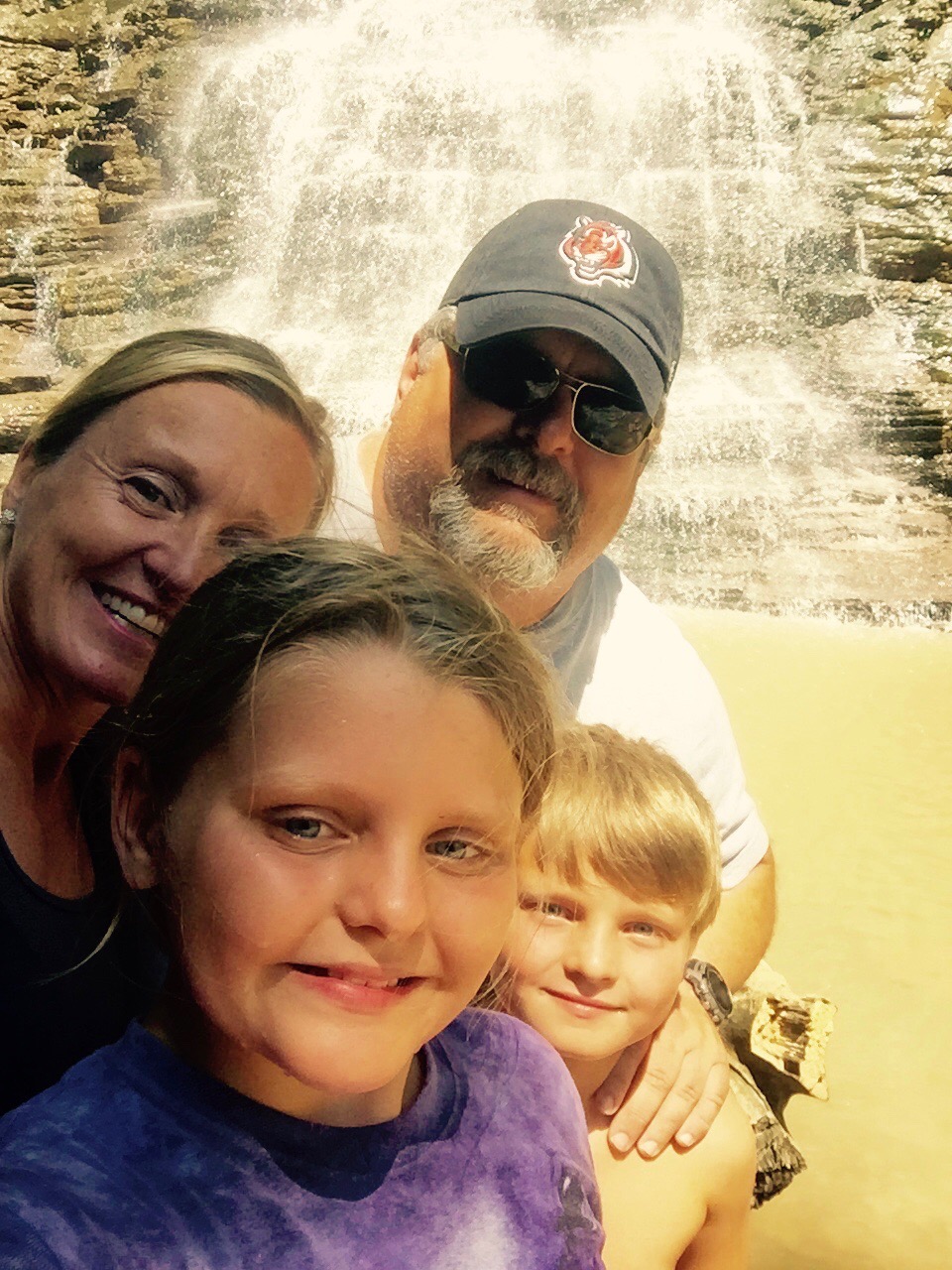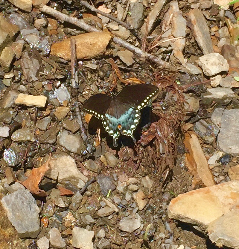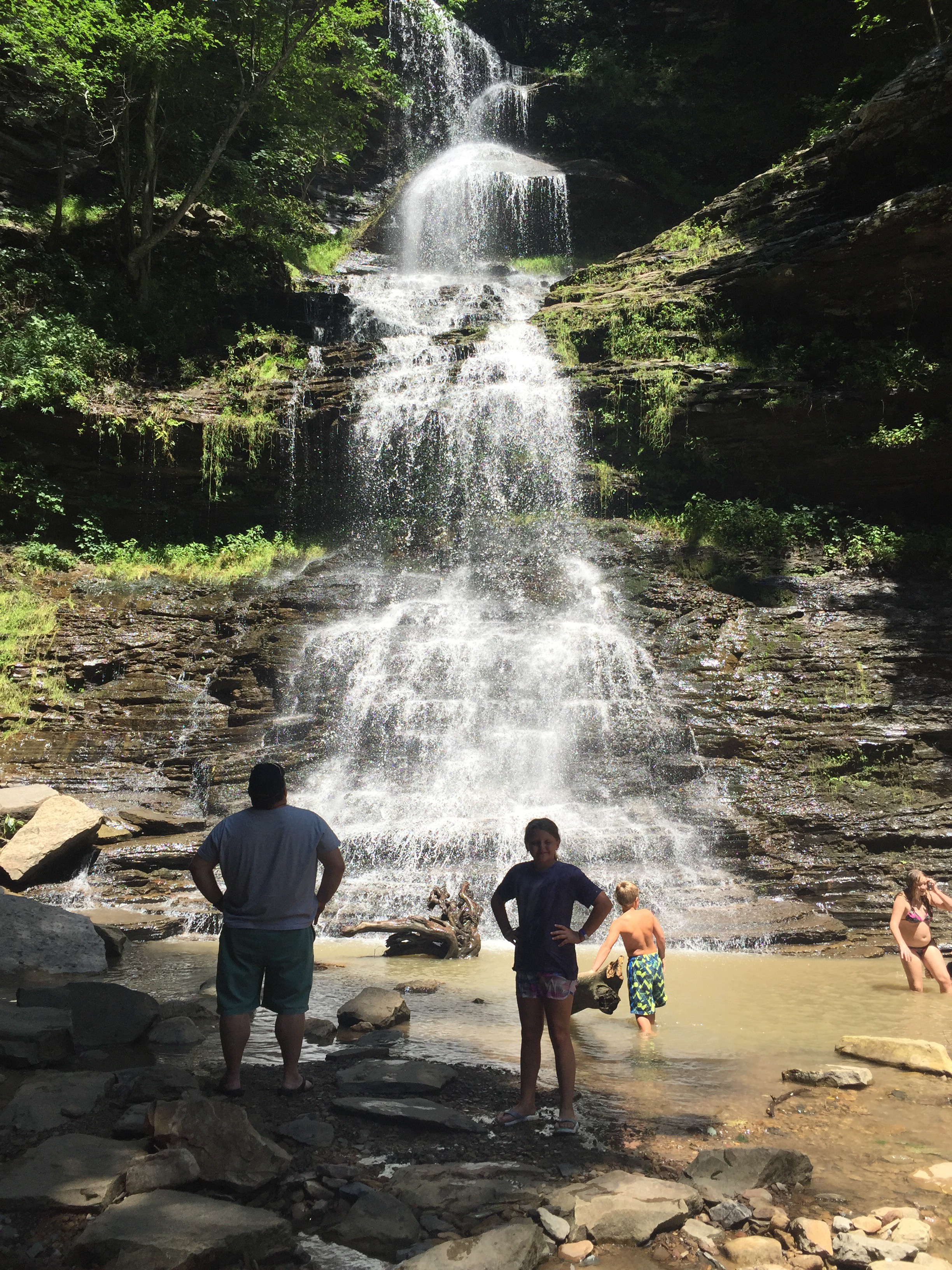 While we were zip lining, Jon got on a work call. As he loves to do, he got in his car and drove around while on the call. He ended up finding some gorgeous sites for us to visit after ziplining. We visited an overlook where you could see the New River and an old bridgespanning across it. It was a gorgeous view. We also got to visit an amazing waterfall right off the side of the road. Mario found some cool butterflies and Maria got to dip her body into the small body of water that had formed underneath the waterfall.