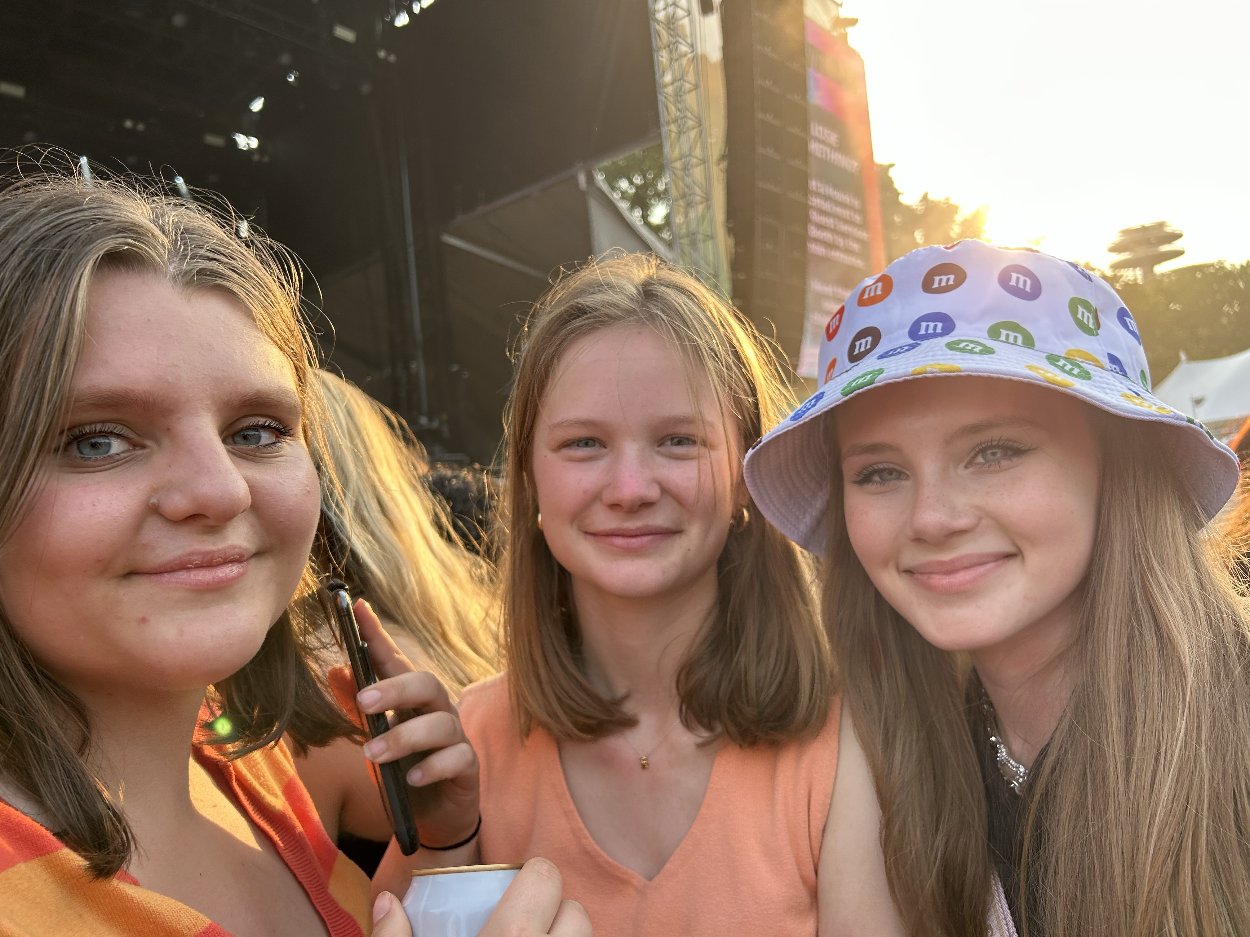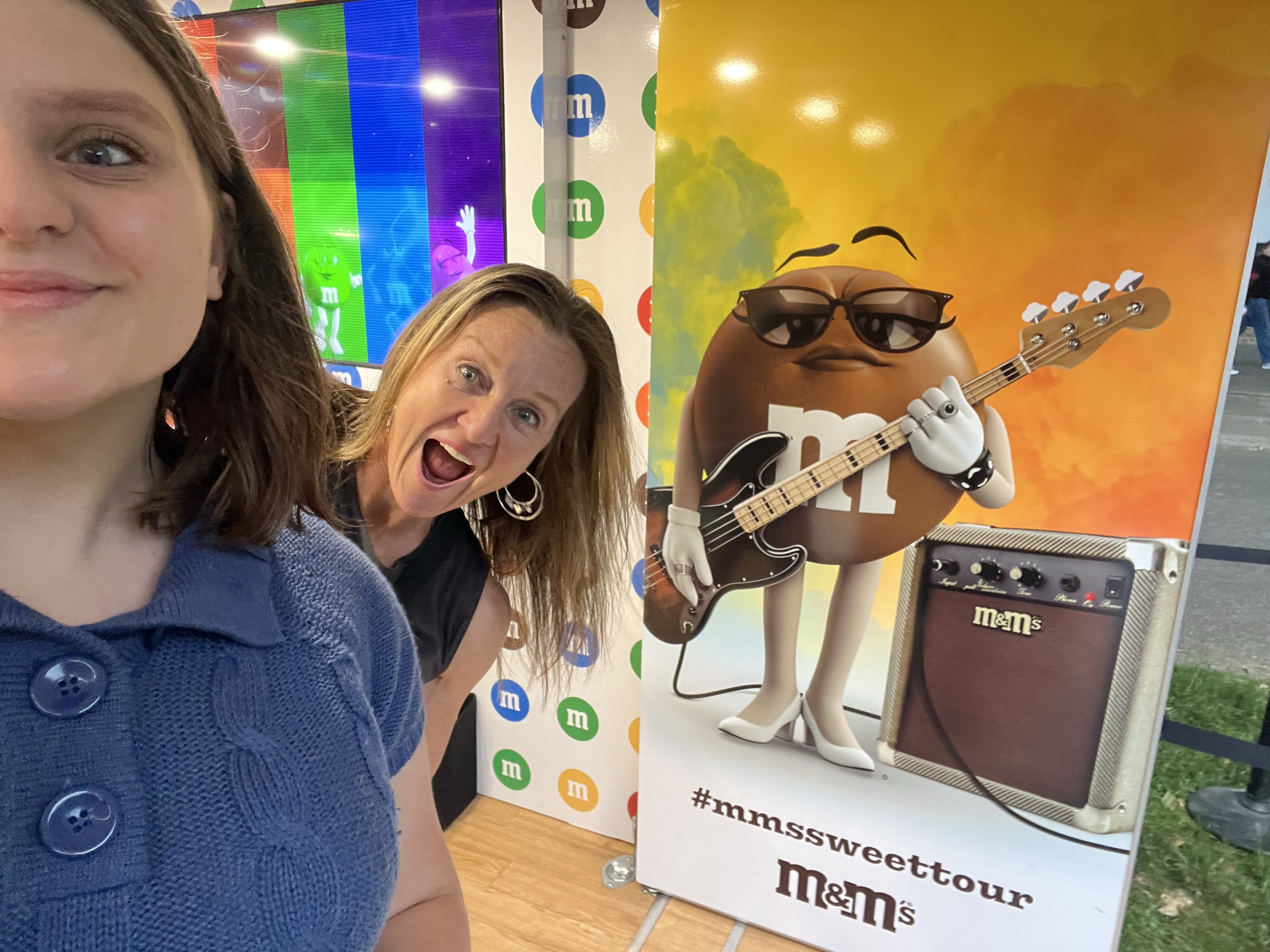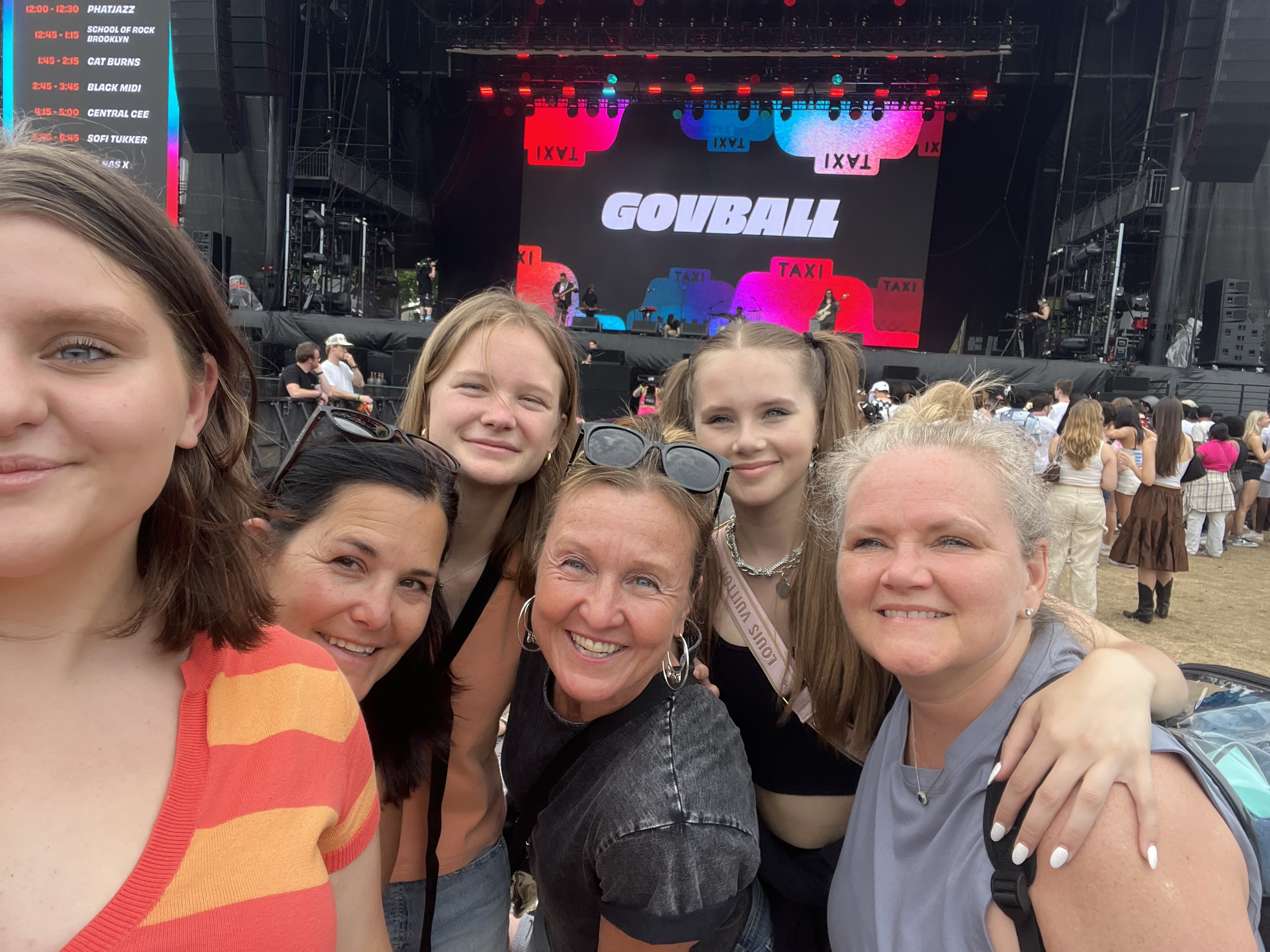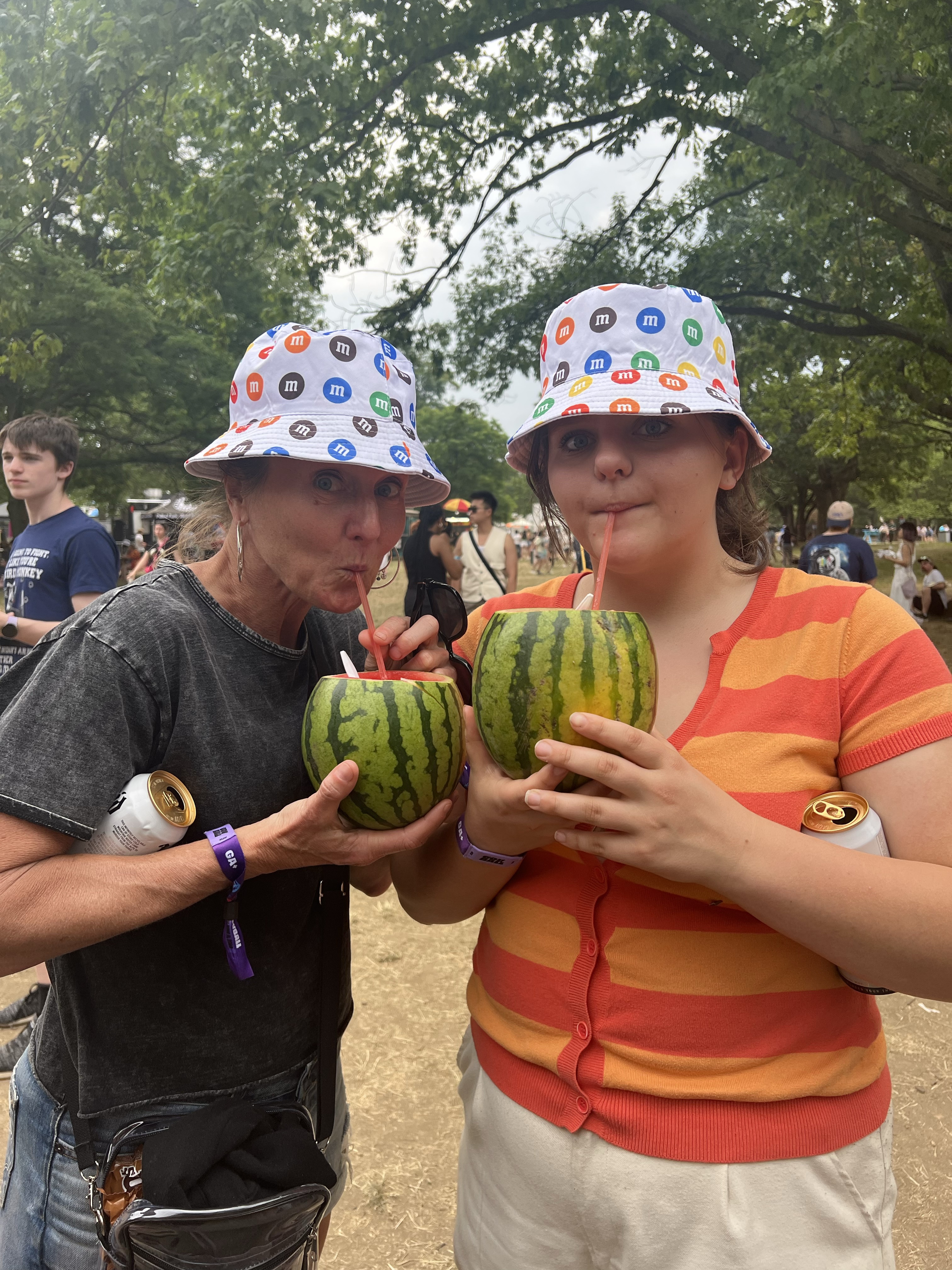 Before Lizzo came on, I made Maria go to the M & M stand with me to get free M&Ms. Heaven! As we were leaving, it poured down rain for about 10 minutes. We happened to be in the middle of the park with no shelter, and got drenched. Maria received a call from her two girlfriends informing her they were in the GA+ area. We made a mad dash over to that area, and we’re happy to see that they were passing out ponchos.  We found Maria’s friends and their moms, and we all embraced in delight! We had finally made it!