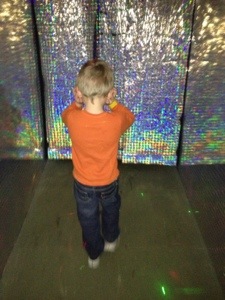 Mario also ended up enjoying the art area. He pooh-poohed it at first when Ri tried to get him to sit with her. He and I and Elena ended up at a table playing blocks for a while. But then he saw kids running their artwork through a drying machine and that intrigued him. I showed him one of Maria’s creations where she traced her initials and that sealed the deal. He ended up in the area for 45 minutes making three separate creations – one with his initials, one with the word “HI”, and one in tribute to his favorite basketball player, James Harden. It warmed my heart watching him and Ri. Elena was simply concerned about getting to the ice cream store. We had promised her ice cream after the museum.