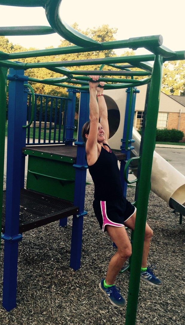 Maria and Mario got the joy of reading her a couple of books and trying to get her to sleep. About 30 minutes later, Mario quietly descended the stairs and proclaimed that he gives up. “She just won’t go to sleep.” He left the job to Maria. And don’t you know, she eventually got the job done. Of course, she ended up falling asleep as well. But she did rise an hour later in order to chat with us and devour some pizza we bought. She knows she’s got to get to bed at a decent hour because the little one will be up at 6:30 am ready to go. And sure enough, you could hear her asking where Meemaw and Mario were before the sun rose. We got up, brushed teeth, put on some clothes, and got E in the stroller to head to Starbucks. We ate our sandwiches and headed off to Frick with the hopes it brought more joy after a full night of sleep. The slide was still a bit wet from the earlier rain but the kids still enjoyed it. We hung on the jungle gym and Elena loved having Meemaw and Mario sweep under her arms and glide her across the playground like she was a bird.