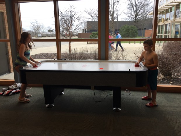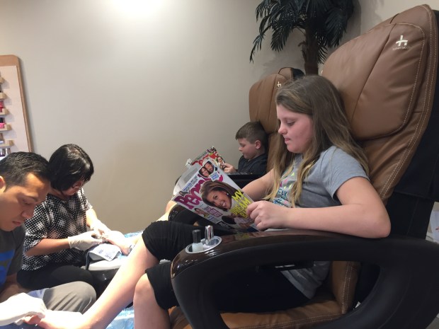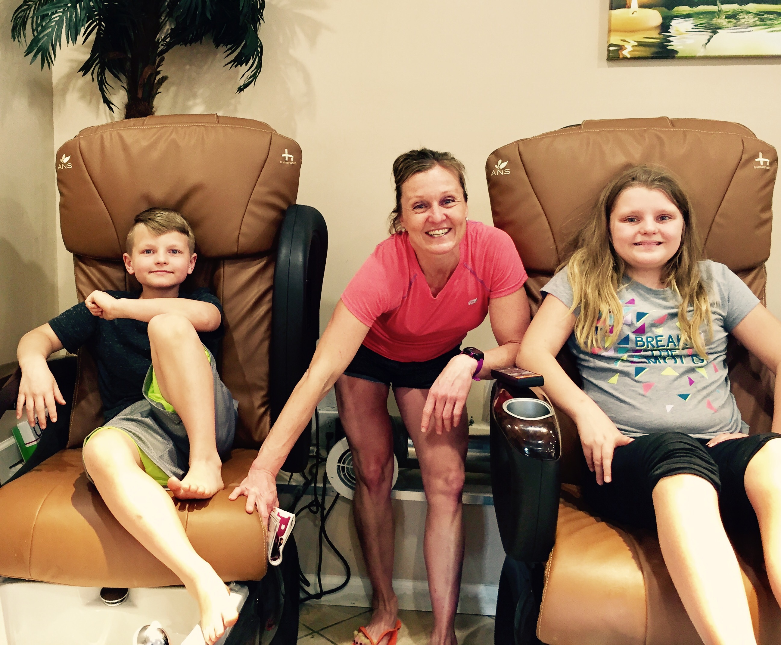 Mario called it quits for trying to put Elena to bed. However, Maria stood strong and succeeded in putting her to sleep a second night in a row. Rock star. The kids played Gin Rummy while I gave Sarah a massage. The next morning, it poured rain. I tried my hardest to get us to walk to Starbucks but I could not convince the kids. Once we started driving there, I was glad that they won. Rain was coming down in buckets. We sat in Starbucks and ate blueberry muffins and oatmeal.
