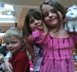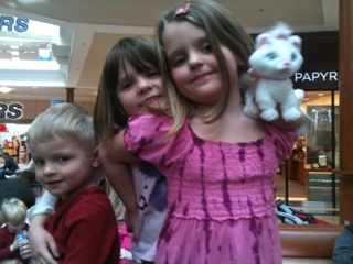 We woke up this morning to 35 degrees. Within five minutes of rubbing my eyes awake, Mario begged to go outside to play b-ball. I made him eat a fiber bar before we went out (a new bribe – eat something good for breakfast and we’ll play b-ball). The boy could play b-ball for hours. We were out there 45 minutes before dad made us come inside because it was so cold. We traveled up to Polaris Mall at noon to meet Grandma and Grandpa Ionno and Maria and Alana. They played at the play land for a while. Alana and Mario ran after each other and tackled each other. Maria felt left out. She sulked over in the corner. I told her to go and play with them but she didn’t feel like it. My girl – she has a lot of loner in her (is that a Menkedick trait?) so I told her to do her own thing. She walked around and climbed some animals in a sort of melancholy fashion but with quiet purpose. After a while, Alana ran up to her and hugged her and that got her in the mood to play again.