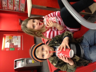 Maria and Mario tested every single futon and couch three times over. We battled a bit with Mario who was dead set on getting some furniture for his room as well as the basement even though we had said 20 times before that we were just going to find a sofa for the basement. Maria then got a bit stressed because she wanted all of us to focus on the sofa and the color scheme of the basement. We finally landed on a couch we all liked an hour later. But then we had to go find it in the self service warehouse, put the boxes on a cart, and take it to check out (because there was no way that I was paying $35 for IKEA to do it). Then, after we checked out, we were required to walk it over to delivery and assembly so they could tag it and give us a delivery date. We were all starving by the time we had simply loaded the boxes on the cart. The checkout line was 6 people deep. Ugh. We would have to have that daggone annoying virtue, patience. We all tapped our fingers as we waited in line, and listened to Mario complain about how he was absolutely starving (it doesn’t help that IKEA has a Cinnabon shoppe at the end of the checkout line). We did have some entertainment when a guy who was in front of us moved out of our line to a new line, and then, 5 minutes later, returned to our line butting his cart in front of us without even saying a word. Jon asked what he was doing, and he had the nerve to be a complete ass. The kids enjoyed watching Jon and him have a little chat….Whatever it takes to divert our attention from hunger. We finally made it out of there two hours later. We were supposed to go to the mall to look for a dress for Maria’s dance but even she had no desire to do it once we left IKEA. We are not the shopping family by any means.