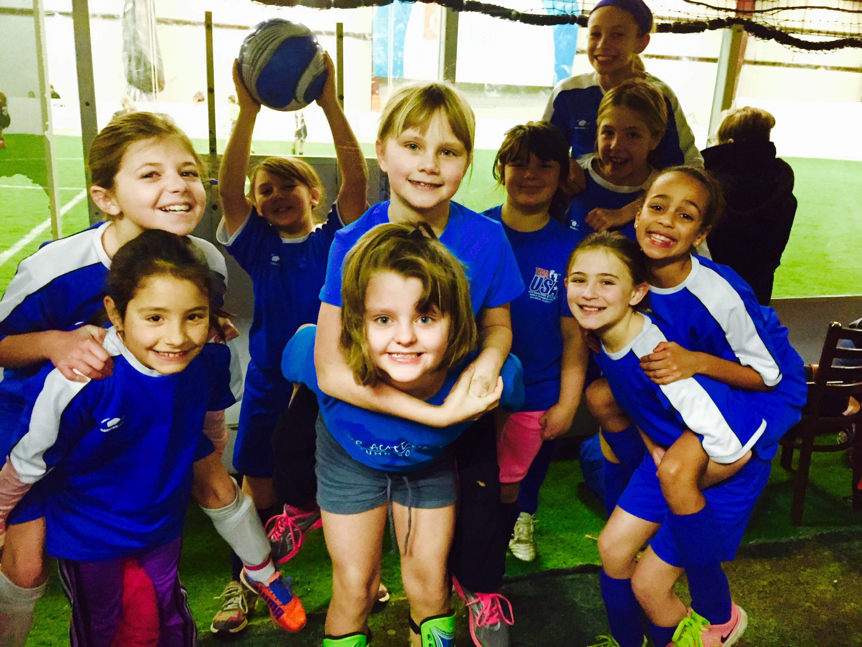 When we got to the site, the girls kicked the ball around while the moms stood around wondering where coffee was located. A couple of the moms talked about their daughters being nervous about playing indoor since they’d never tried it.”She was worried about what to wear.” “She was worried about whether indoor was the same as outdoor.”