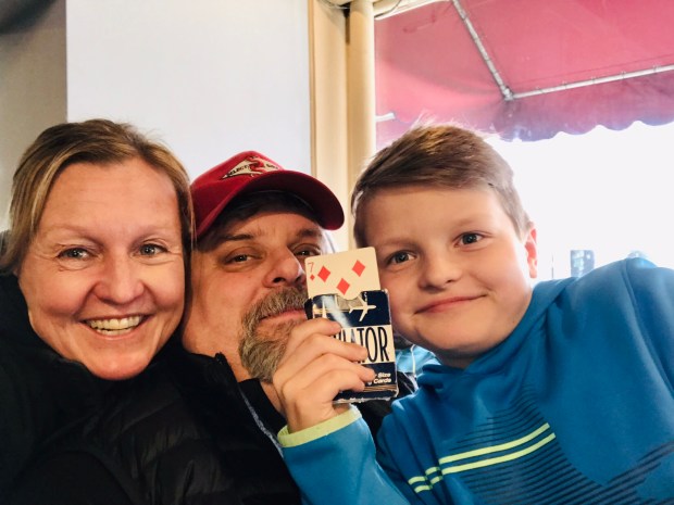 We played our go-to card game – crazy eights- but with a twist to it. Maria came up with the idea that whoever lost the game would have to crawl on all fours down our street as we approached home. I mentioned that there would be two losers with the three of us playing and she made an executive decision that whoever had the most cards when one of us won would be the loser. Of course, that ended up being me. We then decided to play a game of war which we have not played in a long time. Maria came up with the penalty for losing that game as well. Whoever got out of cards first had to hop on one foot down our street. Mario ended up with that one.