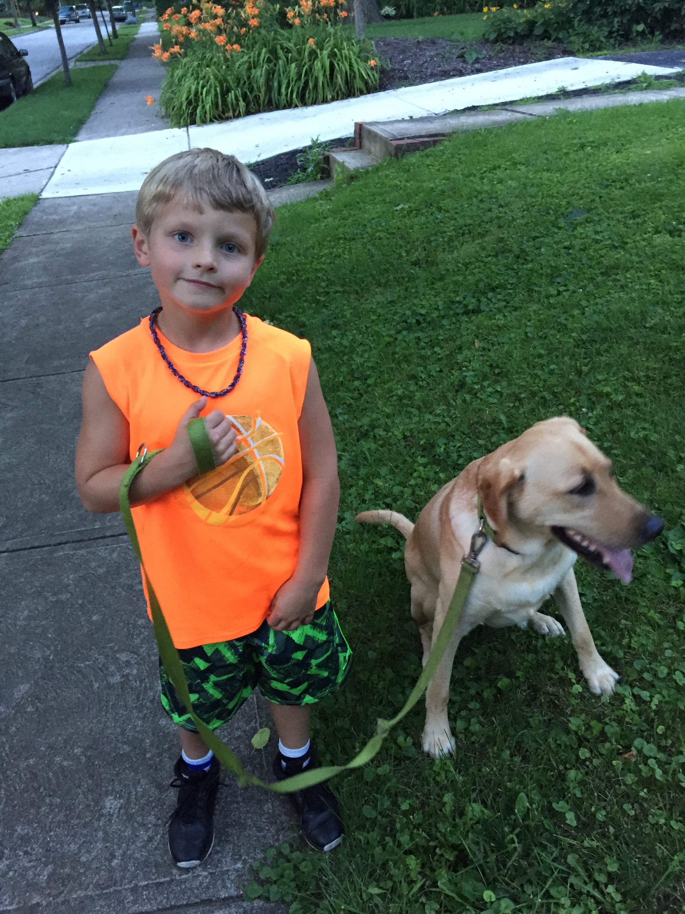 We played our go-to card game – crazy eights- but with a twist to it. Maria came up with the idea that whoever lost the game would have to crawl on all fours down our street as we approached home. I mentioned that there would be two losers with the three of us playing and she made an executive decision that whoever had the most cards when one of us won would be the loser. Of course, that ended up being me. We then decided to play a game of war which we have not played in a long time. Maria came up with the penalty for losing that game as well. Whoever got out of cards first had to hop on one foot down our street. Mario ended up with that one.