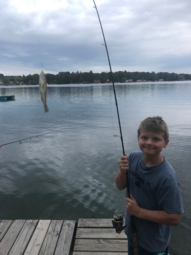 The experience made me feel so joyful. I really wanted my dad and Mario to connect during his time out at the farm. I had romantic visions of grandfather and grandson having deep conversations while sitting in the fishing boat for hours on end. A little on Golden Pond scene if you will. I am not quite sure that my romantic vision lined up with the reality of the two weeks, but that’s fine. The realistic version of the romantic vision did occur. Peepaw and Mario hung out together through the day, talking about random matters, and being in each other’s company. They got some fishing in and ribbed each other on who caught the largest fish. They bonded over blueberries. Mario also got to connect with Mama Meg more than he usually does when we are out there for a short period of time (they bonded over the show Stranger Things).