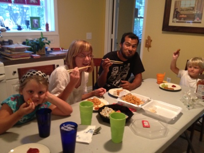 One of the ways I was able to get Mario to jump off the dock and into the lake was to play a game. He, I and Maria would hold hands and have to yell out a certain response to a question while we jumped in the water. I found that one of the questions he loved was to name a basketball player. Ri and I must have jumped off the dock with him 10 times before he realized where he was and feared the fish. The most exciting time for the kids in the lake was when Jon made one trip out to the deck and proceeded to chuck the kids off each time they got near him. They absolutely loved it (and went flying into the water).
