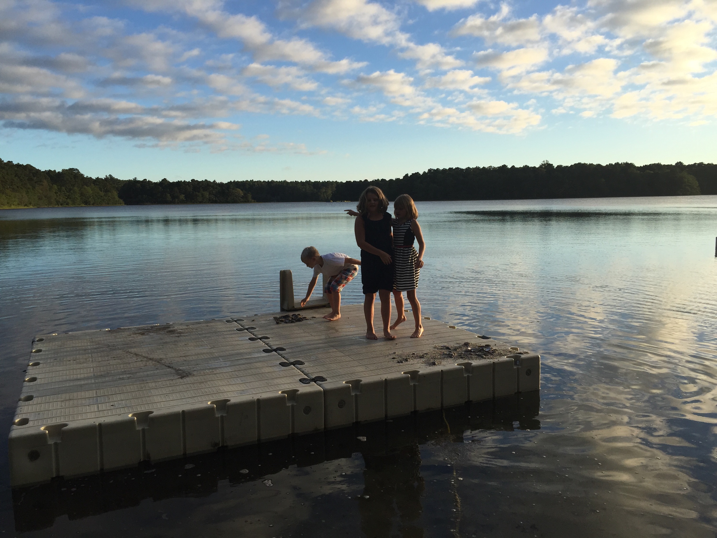 One of the ways I was able to get Mario to jump off the dock and into the lake was to play a game. He, I and Maria would hold hands and have to yell out a certain response to a question while we jumped in the water. I found that one of the questions he loved was to name a basketball player. Ri and I must have jumped off the dock with him 10 times before he realized where he was and feared the fish. The most exciting time for the kids in the lake was when Jon made one trip out to the deck and proceeded to chuck the kids off each time they got near him. They absolutely loved it (and went flying into the water).