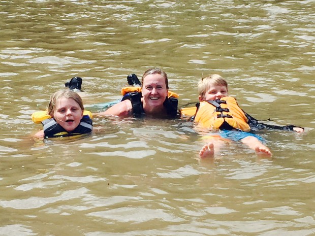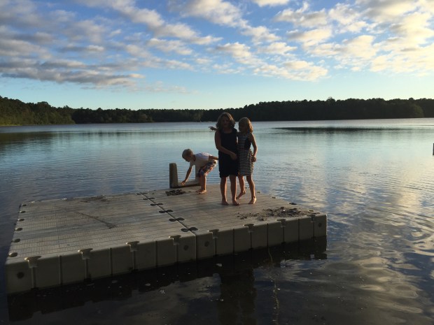 I loved this vacation so much. It was by far my favorite one with the kids. I think a big reason for my enjoyment was because I made a conscious effort to relax and let the stress go prior to heading out. I continuously thought about letting it all go for a few days before our departure. I have failed to take that step and consciously get in that mindset for past vacations. I let go of any expectation that the kids would sit on the deck and read books for two hours or any expectation that I should get up and exercise. We just all did what we wanted to do, which ended up being perfect. The kids didn’t want to play on their phones all the time. They came out and played in the sand and paddle boated with me. I had no desire to go out for a 5 mile run. Rather, I enjoyed walking out in the lake with the kids and sitting on the dock with Jon while they fished.