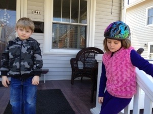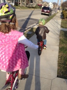 Maria had a Strings picnic on Saturday afternoon. I thought it was just a gathering outside the middle school to play on the swings and jungle gym and get to know fellow String players. I had Joanne pick up Ri so I could finish cleaning and told Ri I’d meet up with her at 1 (the picnic was 12-2). Mario and I walked up at 1. I should say that Mario started out in the stroller but then walked as soon as we spotted his football coach. He had not wanted the stroller to begin with but we were in a hurry and he wanted to eat lunch so he couldn’t bike. He even told me as he hopped in “I can’t let anyone see me in this because it’s embarrassing.” So when we spotted Coach Jim and his family a block ahead of us, he leaped out of his seat and walked ahead of me. What a trip.
