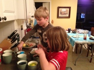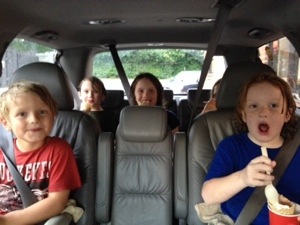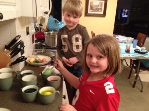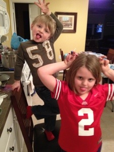 On Sunday, Jon and I were treated to an anniversary breakfast in bed by M&M. Mario kept running into our room to see if we were sleeping until finally he pleaded for us to get up at 8 am (yea, they were up before 7). He brought us two coffees and me a Powerade. He knows his mama. Ri brought up two plates holding two over easy eggs and a waffle. They made us eat all the food as they watched us (the eggs may have needed cooked a bit longer). We told them that the best things to came from our marriage were them munchballs.