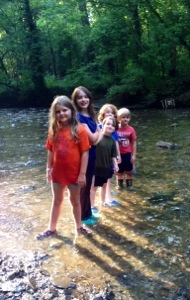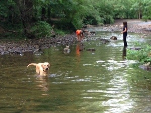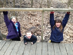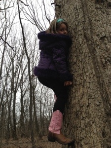 I did get the kids to take Rocco to the woods with me. Rocco has finally come to terms with the kids climbing up the tree. He used to bark and jump up on the tree to get them.