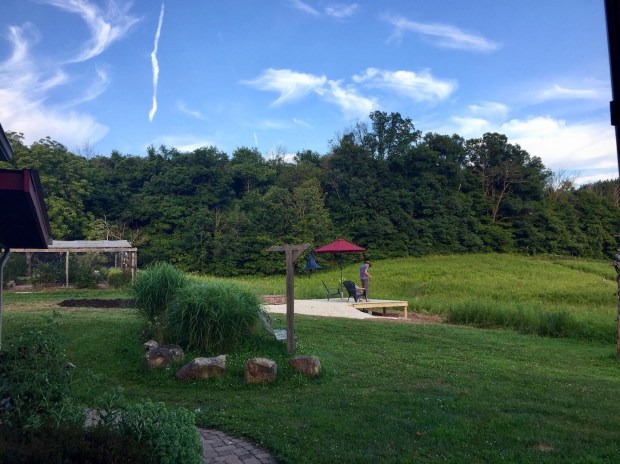By the time I got out there on Wednesday morning, he and Peepaw had completed the firepit and the yoga platform, and put away all the materials they had been working with over the last two weeks. It looked wonderful. They also had spent two hours picking blueberries off the vines and putting them in individual containers in accordance with the type of blackberry picked. I got treated to a taste test of blueberries upon my arrival. Heaven. We sat on the screened-in porch and chatted. It was nice to chill out for 45 minutes and just sit with family. I am usually on the go when I am there either playing with Elena or taking a hike. I am trying to learn how to sit still more often.